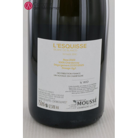 L’Esquisse Blanc de Blancs est un champagne à la fois accessible et raffiné, pensé pour être apprécié jeune afin de profiter de sa vivacité et de son éclat. Il illustre le savoir-faire de la maison Moussé dans un style pur, précis et très gourmand.